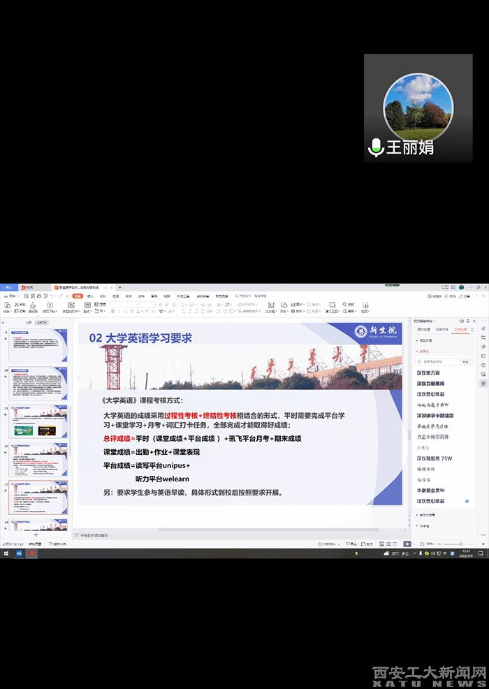 為了便于學(xué)生對于大學(xué)英語課程學(xué)習(xí)有一個簡單的前期了解和認(rèn)識,依據(jù)《大學(xué)英語》教材和教學(xué)要求,新生院特制定了2022級《大學(xué)英語》學(xué)習(xí)要求。2022年9月7-11日,新生院召開了2022級新生線上年級大會。在年級大會上,由班主任對此要求進行宣講和解讀,開啟2022級學(xué)生對于大學(xué)課程的認(rèn)識之旅。