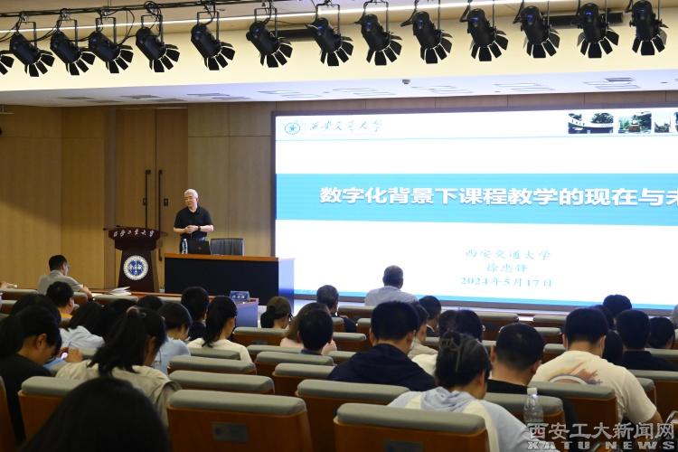 (本網訊)5月17日下午,國家級教學名師、西安交通大學教師教學發展中心主任徐忠鋒教授應邀為我校教師作題為《數字化背景下課程教學的現在與未來》的專題報告。本次講座由教師教學發展中心和新生院聯合舉辦。本科生院副院長劉振亭、新生院全體教師及各學院教師代表等共200余人參會,會議由新生院院長張麗麗主持。