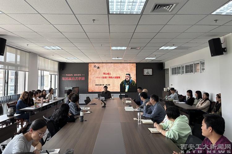 (本網訊)4月8日,在學校70周年校慶到來之即,馬克思主義學院舉辦“‘學以成人’馬克思主義學院高質量人才培養高端報告會暨慶祝建校70周年系列活動”報告會第一場,特邀全國高校思政課名師工作室(西安交通大學)負責人、國家社科基金重大項目“中華優秀傳統文化與科學社會主義價值觀主張高度契合性研究”首席專家,西安交通大學中國馬克思主義研究所所長陸衛明教授為我院師生作了題為《學以成人:<論語>的智慧》的專題報告會,會議由院長梁華平主持。馬克思主義學院教師與研究生參加報告會。