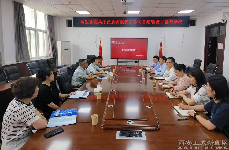 座談會上,機電工程學院院長王洪喜向吳忠儀表有限責任公司介紹機電工程學院的歷史沿革、專業設置、人才培養的獨特特色、科研項目等各方面的具體情況。