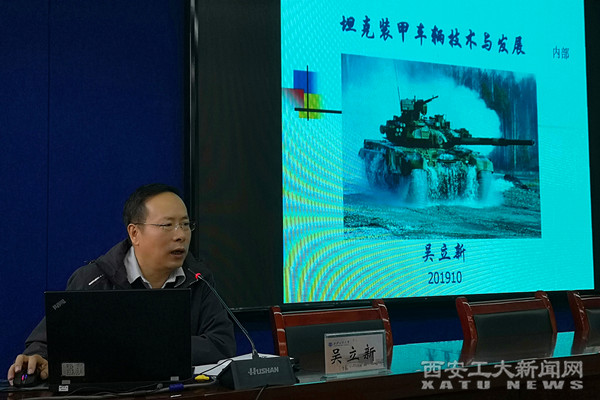 報告會上,吳立新研究員結合自身的實踐經驗和研究成果,從坦克裝甲車輛的過去與現在、功能與組成、炮塔武器系統與發展三個方面向在場師生介紹了我國坦克裝甲車輛的現狀與未來的發展動向。他表示,坦克裝甲裝備以及其他作戰系統大多會歷經信息化、網絡化、無人控制化、智能化的發展歷程,希望廣大師生抓住機遇,迎難而上,為將我國建成軍事化強國奉獻自己的一份力量。