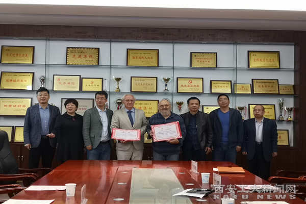 (本網(wǎng)訊)10月18日,RUDOLF ROBERT STOOP教授、GEZA KOLUMBAN教授特聘教授儀式在我校未央校區(qū)舉行。副校長任海鵬,電子信息工程學(xué)院院長高嵩、黨委書記張忠出席,五十余名師生慕名而來,共同見證聘任儀式并聆聽學(xué)術(shù)報告?;顒佑呻娮有畔⒐こ虒W(xué)院副院長王鵬主持。