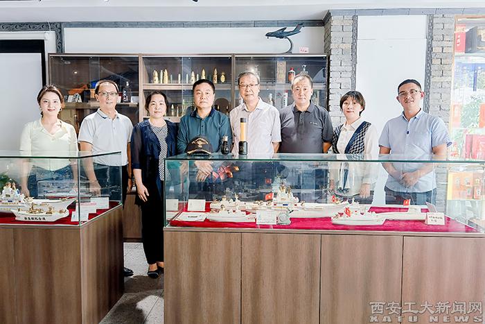 酒韻齋軍事分館負責人張帆是陜西酒瓶收藏第一人,他熱情接待了學校一行,并表示自己與西安工業(yè)大學淵源深厚,在這里度過了美好的中小學時期。此分館的收藏酒瓶不僅有陶制、青銅、漆器、角制、玉石、玻璃、景泰藍等不同材質(zhì),還陳列著眾多有關部隊方面的酒瓶,如飛機、大炮、軍艦、導彈、手雷、子彈、手榴彈、槍、航天器等形狀的器皿。他就館藏的經(jīng)營理念和文化建設進行了介紹,對學校校友工作的發(fā)展建設提出了意見建議。我校校友、大學客聯(lián)合創(chuàng)始人何周平陪同我校一行參觀了分館建設情況。
