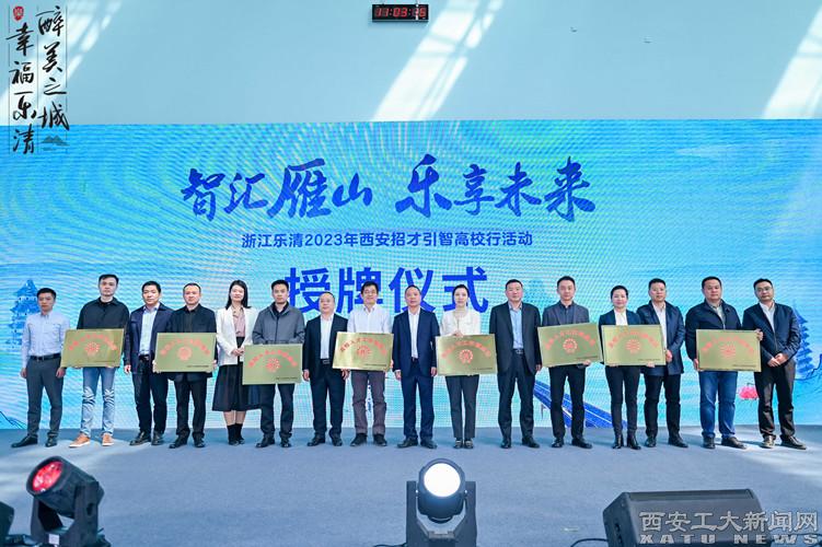 前期,浙江樂清人社局一行來校,雙方就在我校設立樂清市“高校人才工作聯絡站”達成合作意向并簽署協議書,宣傳樂清市有關人才政策、招才引智活動人才需求信息。同時,我校根據學科專業推薦畢業生赴樂清就業創業。在招聘會現場,樂清人社局對我校“高校人才工作聯絡站”授牌。