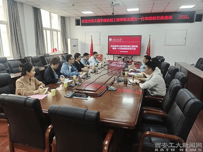 (本網(wǎng)訊)4月20日,寶雞文理學院機械工程學院王肖燁院長一行6人來我校圍繞科研團隊建設、人才培養(yǎng)、博士點申報建設等工作進行調(diào)研交流。我校機電工程學院院長王洪喜、副院長曹蔚、副院長董皓、辦公室主任唐博與來賓進行了座談交流。本次會議由王洪喜主持。