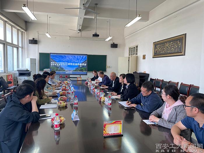 基礎(chǔ)學(xué)院黨政領(lǐng)導(dǎo)、辦公室主任、本科及研究生輔導(dǎo)員參加了合作交流會(huì)。西安國(guó)家民用航天產(chǎn)業(yè)基地科技創(chuàng)新與人才服務(wù)中心、金諾智慧物業(yè)服務(wù)有限公司、青海黃河上游水電開發(fā)有限責(zé)任公司西安太陽能電力分公司、陜西科為物業(yè)、陜西煤業(yè)化工技術(shù)研究院有限責(zé)任公司西安分公司、四川旺澤集團(tuán)、西安秦泰汽車排放技術(shù)有限公司、西安天和激光儀器有限責(zé)任公司等單位代表應(yīng)邀參加會(huì)議。