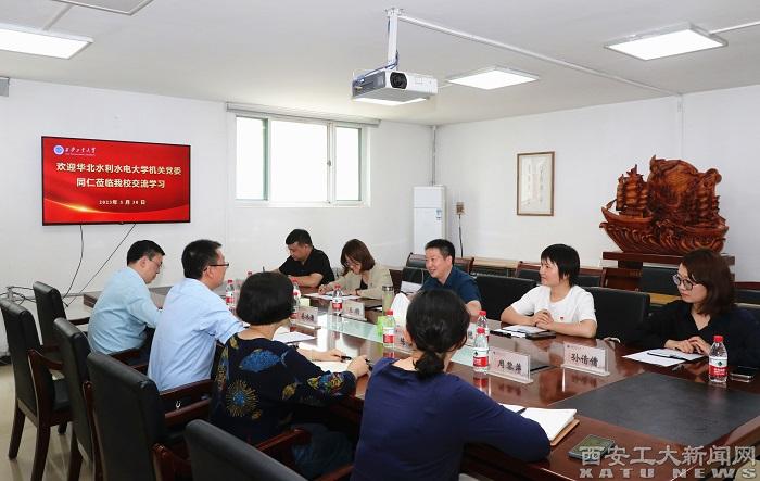 王明談到,西安工業(yè)大學(xué)和華北水利水電大學(xué)雖然所在省份不同,但在辦學(xué)規(guī)模、層次以及相關(guān)體系建設(shè)等方面具有相同之處。通過(guò)介紹,他認(rèn)為西安工業(yè)大學(xué)機(jī)關(guān)黨委在創(chuàng)新理論中心組學(xué)習(xí)形式、黨建與業(yè)務(wù)工作雙融雙促等方面不斷豐富抓手和載體,工作特色突出、成效明顯,具有可借鑒性。隨后他介紹了華北水利水電大學(xué)近年的發(fā)展?fàn)顩r,交流了學(xué)校機(jī)關(guān)黨委工作開(kāi)展的情況。