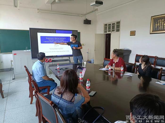 (本網(wǎng)訊)6月14日,基礎(chǔ)學(xué)院邀請德克薩斯農(nóng)工大學(xué)的數(shù)據(jù)科學(xué)和統(tǒng)計學(xué)助理教授魏征博士為學(xué)院師生作了題為《隨機(jī)前沿分析的非參數(shù)機(jī)器學(xué)習(xí):單調(diào)貝葉斯加性回歸樹方法》的學(xué)術(shù)報告。本次報告由基礎(chǔ)學(xué)院數(shù)學(xué)系主任周宏安教授主持。我校基礎(chǔ)學(xué)院數(shù)學(xué)系本科生、研究生及部分教師參加了報告。