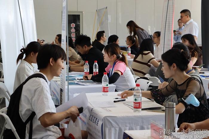 推介會最后,隆基綠能、陜西中科重工、西安眾為科技等二十余家企業聯合開展現場招聘會,來自西安工業大學各學院及部分校外學子投遞簡歷并與企業進行交流。