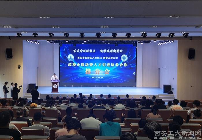 程建虎在致辭中回溯了高陵的歷史人文,介紹了西安工業大學及文學院的發展現狀,指出學校與高陵區隔河相望,比鄰而居,有著天然的淵源和深厚的緣分,他號召西工學子在“北跨”的激昂號角中,選擇高陵區,建功新時時代。接著屈健康做人才推介專題宣講,他指出高陵是歷史文化之城、“北跨”發展之城、千億元工業之城和人才匯聚之城,介紹了“全職引進”、“柔性引進”和“本地培養”等人才政策細則,并表示人社局組織的22家企業的近三百個崗位正虛位以待。隨后劉晶宣講招才引智相關政策,她從項目支持、人才引進、資金支持和優化服務四個方面介紹了高陵區在實施“西安英才計劃”中的有力舉措。全球規模最大的太陽能科技公司隆基綠能賀經理代表企業發言,她主要介紹了隆基的人才培養規劃和校招訓練營,全球領先的技術、優越的工作環境、巨大的上升空間和充滿朝氣的企業文化讓現場學子躍躍欲試。