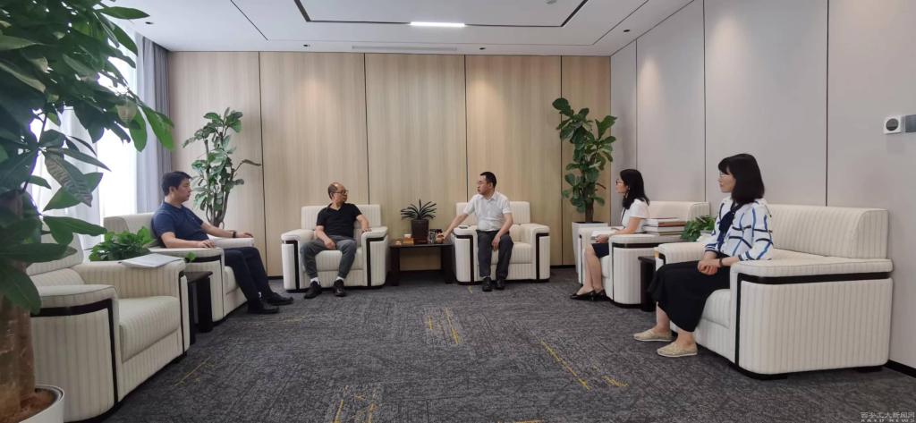 (本網訊)6月15日,文學院院長馮希哲、副院長吳妍妍和外語系主任張靜華一行赴世界圖書出版西安有限公司洽談全面合作事宜。