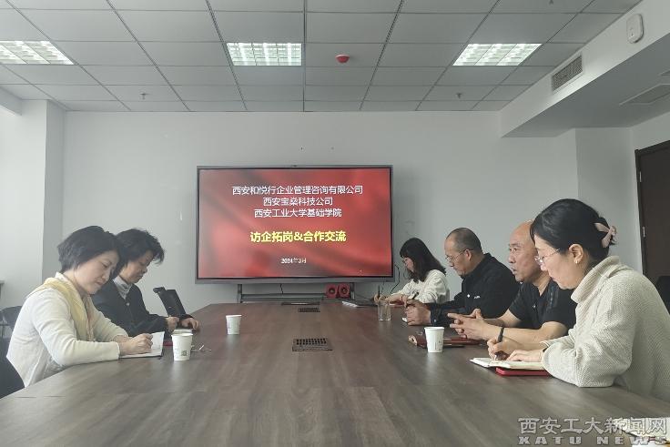(本網訊)3月13日下午,西安寶燊科技有限責任公司、西安和悅行企業管理咨詢有限公司至基礎學院進行“訪企拓崗”校企合作交流活動。基礎學院院長張建生、黨委副書記張艷霞、副院長馮孝周參加座談會。