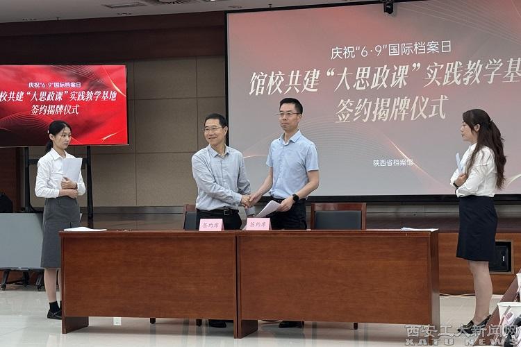 我校馬克思主義學院院長梁華平、副院長孟文科參加了簽約揭牌儀式。梁華平與省檔案館一級巡視員王康生共同簽署了我校與陜西省檔案館“館校共建‘大思政課’”實踐教學基地共建協(xié)議。下一步,我校將積極落實共建協(xié)議,通過教學實踐、聯(lián)合研究、業(yè)務互助、師資建設、志愿服務、案例分享、主題活動等工作,打造學生思想政治教育的良好實踐環(huán)境,進一步推動我校思政課建設內涵式發(fā)展。