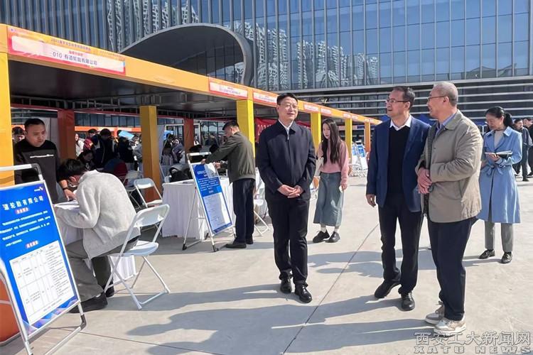 會后,雙方來到雙選會現場,了解企業現場招聘以及畢業生就業需求情況。