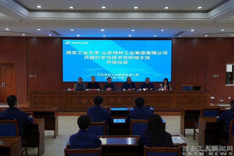 (本網訊)近日,西安工業大學同等學力申碩山東特種工業集團兵器專班開學典禮在山東省淄博市山東特種工業集團報告廳順利舉行。山東特種工業集團黨委副書記、紀委書記、工會主席張馳、西安工業大學兵器科學與技術學院黨委書記蔡長龍、西安工業大學繼續教育學院副院長校江超出席開班儀式,39名學員參加本次開班典禮。
