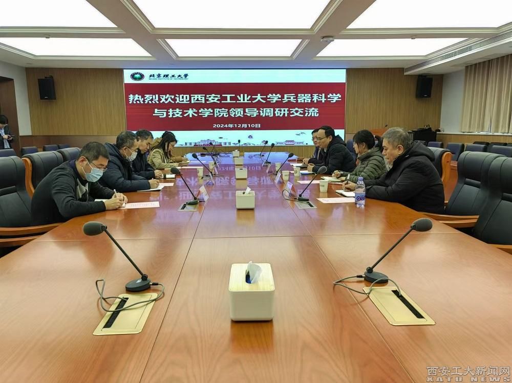 12月10日下午,肖鋒一行赴北京理工大學(xué)機(jī)電學(xué)院調(diào)研交流。北京理工大學(xué)機(jī)電學(xué)院副院長(zhǎng)張建國(guó)、黨委副書(shū)記韓姍彬、兵器控制系主任申強(qiáng)、兵器探測(cè)系副主任隋麗、兵器控制系副主任宮久路等出席調(diào)研交流會(huì)。首先,在張建國(guó)帶領(lǐng)下肖鋒一行參觀了兵器成果展室。在座談交流中,雙方互相介紹各自學(xué)校的發(fā)展歷程和學(xué)院的基本情況,重點(diǎn)圍繞人才培養(yǎng)理念、學(xué)科建設(shè)、科學(xué)研究、拔尖人才培養(yǎng)、學(xué)科競(jìng)賽等方面經(jīng)驗(yàn)做法進(jìn)行分享。與會(huì)人員還就書(shū)院制培養(yǎng)模式、考研推免、教育教學(xué)實(shí)踐以及后續(xù)加強(qiáng)學(xué)術(shù)交流合作等方面進(jìn)行探討。