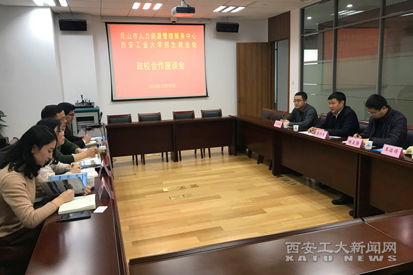 昆山市人力資源服務中心、海康威視及吉利集團分別介紹了近年來發展概況及人才引進、校園招聘相關工作。吳介軍介紹了我校歷史淵源、發展成就、專業建設及人才培養等方面情況,雙方就校企在招聘、實習、宣傳等環節合作、組織選派輔導員老師和意向畢業生走進地方、深入企業等進行了廣泛而深入的交流,并達成初步意向。