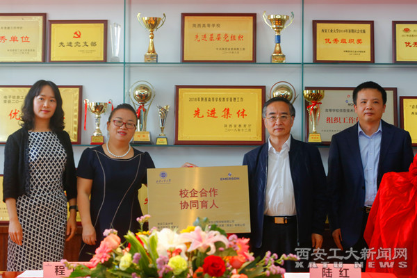 隨后,趙紅星、閆莉分別與艾默生科技資源(西安)有限公司和艾默生過程控制有限公司簽署了戰略合作協議及校企合作基地協議,并與企業代表為共建實驗室、實踐教學基地、大學生就業實習基地揭牌。
