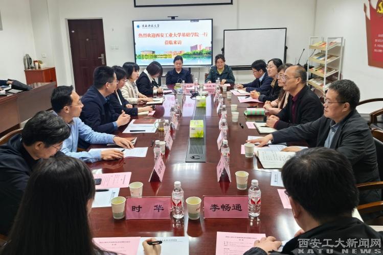 (本網訊)4月7日上午,我?;A學院黨委書記張英、院長馮孝周一行前往陜西科技大學數學與數據科學學院開展調研座談。陜西科技大學數學與數據科學學院黨委書記郭改慧及領導班子成員共同參加,會議由院長李劍主持。