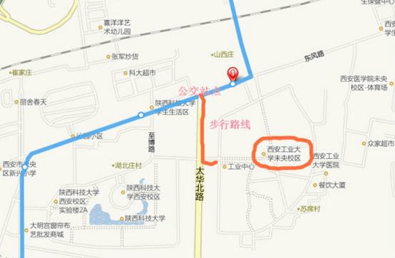 3、地鐵路線:乘坐地鐵2號(hào)線至市圖書館站下車,換乘336路、509路、719路公交車至西安工業(yè)大學(xué)站下車,丁字路口向南直走200米路東即見西安工業(yè)大學(xué)校西大門。