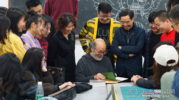 此前,呂敬人走進學生課堂,與視覺傳達設計專業正在學習書籍設計的學生進行了現場交流和互動,點評并指導了學生正在進行的書籍設計習作,極大地激發了學生們學習熱情與主動性。