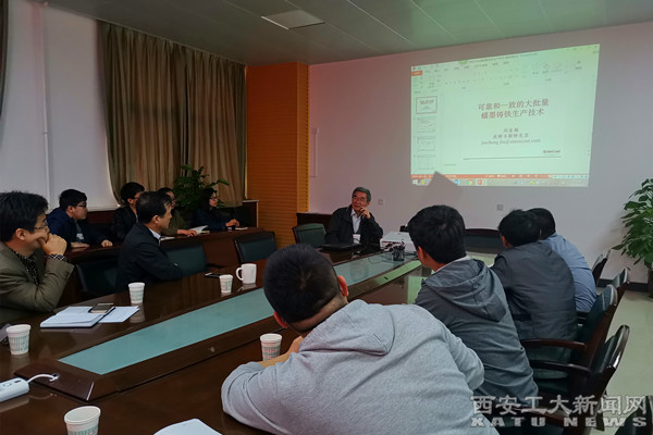 報告會上,材化學院副院長郭永春介紹了劉金城教授的研究方向和成果,并對劉金城教授的來訪和交流表示歡迎。隨后,劉金城教授對我校材料學科教學科研取得的豐碩成果與突出工程實踐的人才培養特色給予高度評價。然后,他結合球墨鑄鐵與蠕墨鑄鐵合金研究與應用現狀,鼓勵青年學子勤奮學習,求實求真,勇于創新。他指出,高性能蠕墨鑄鐵可靠生產有著很大的發展空間,希望大家能夠深入研究,為創新型國家建設貢獻聰明才智。