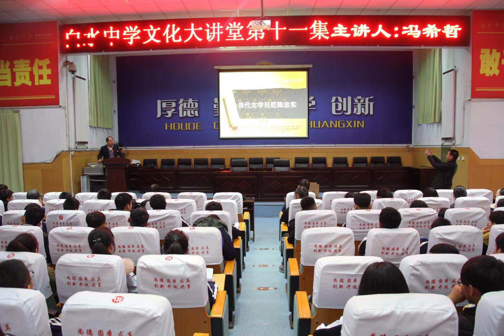 (本網訊)11月29日,我校外國語學院院長馮希哲教授應邀做客白水中學文化大講堂,為該校學生作題為《當代文學巨匠陳忠實》的精彩報告。