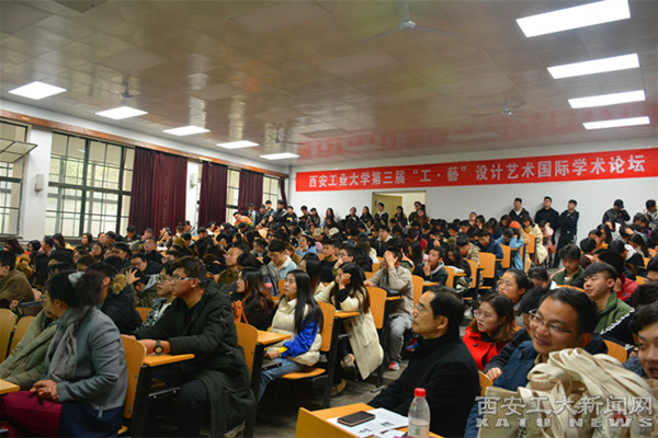 (本網訊)11月30日,由我校藝術與傳媒學院承辦的“西安工業大學第三屆“工·藝”設計藝術國際學術論壇”在金花校區圓滿舉行,本屆論壇以“融合與突破:當代設計文化下的本土與域外”為主題,分為主題演講和現場座談兩部分進行。藝術學院黨政領導及師生200余人參與活動。