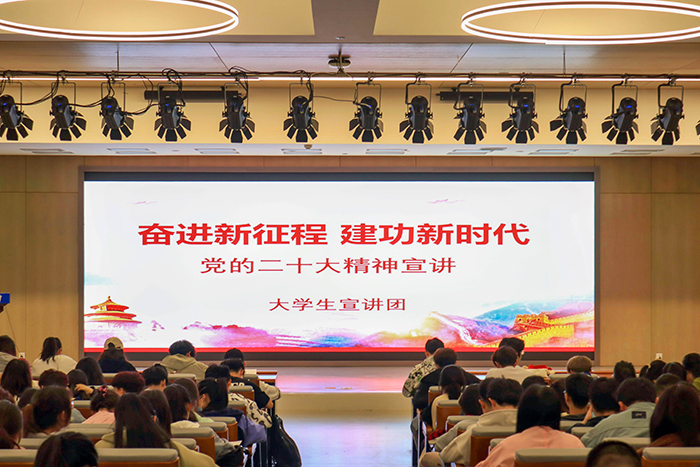 (本網訊)5月10日,我校大學生宣講團在圖書館報告廳開展了“奮進新征程,建功新時代”為主題的黨的二十大精神宣講活動。新生院學生代表300余人參加了本次宣講會。