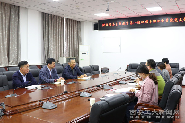 (本網(wǎng)訊)10月29日上午,陜西省委“不忘初心、牢記使命”主題教育第八巡回督導(dǎo)組聯(lián)絡(luò)員雷永強(qiáng)來(lái)機(jī)電學(xué)院開(kāi)展工作督導(dǎo)座談,我校黨委組織部副處級(jí)組織員趙偉陪同。機(jī)電學(xué)院黨委書(shū)記路金龍參加座談會(huì),學(xué)院全體學(xué)生黨支部書(shū)記匯報(bào)近期“不忘初心、牢記使命”主題教育工作具體情況。