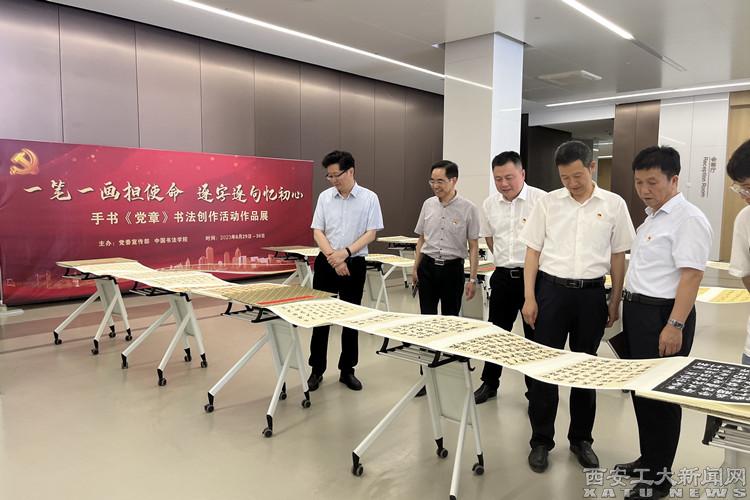 (本網(wǎng)訊)在慶祝中國(guó)共產(chǎn)黨成立102周年之際,為深入學(xué)習(xí)貫徹落實(shí)習(xí)近平新時(shí)代中國(guó)特色社會(huì)主義思想和黨的二十大精神,引導(dǎo)廣大師生黨員更加自覺(jué)地學(xué)習(xí)黨章、遵守黨章、貫徹黨章、維護(hù)黨章,6月29日,黨委宣傳部、中國(guó)書法學(xué)院主辦的“一筆一畫擔(dān)使命,逐字逐句憶初心”手書《中國(guó)共產(chǎn)黨章程》書法創(chuàng)作活動(dòng)作品展在未央校區(qū)圖書館舉辦。校黨委書記劉衛(wèi)國(guó),校黨委副書記梁云鶴,校黨委副書記、紀(jì)委書記、省監(jiān)委駐校監(jiān)察專員王發(fā)合,校黨委副書記馬福,副校長(zhǎng)劉發(fā)林、陳建等出席展覽。