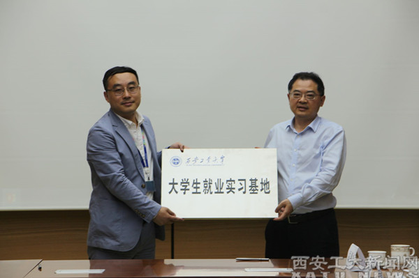 趙祥模為三星(中國)半導體有限公司授予“西安工業大學就業實習基地”匾牌,張群代表我校簽署了《就業實習基地合作協議》。