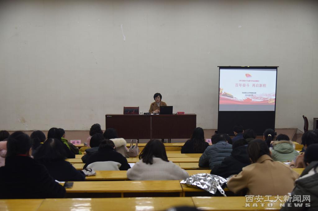 (本網訊)按照《中共陜西省委教育工委陜西省教育廳學習貫徹黨的十九屆六中全會精神宣講工作方案》(陜教學組〔2021〕53 號)及《西安工業(yè)大學學習貫徹黨的十九屆六中全會精神宣講工作方案》文件精神,西安工大成立三支宣講團隊伍,負責宣講黨的十九屆六中全會精神。12月15日,附屬中學黨總支部舉辦學習黨的十九屆六中全會精神專題輔導,邀請西安工業(yè)大學教工宣講團成員、馬克思主義學院教師陳泊蓉作專題輔導報告。附屬中學黨總支部書記胡誠忠主持報告會。