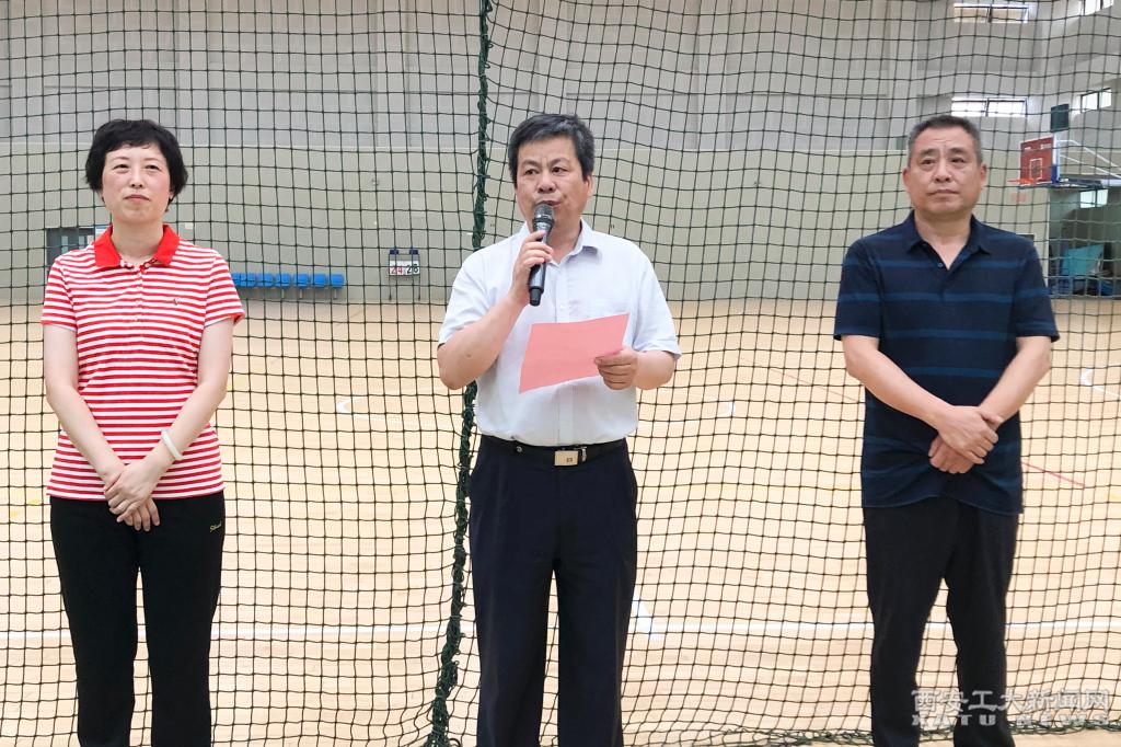 6月9日晚在未央校區體育館舉行了開幕式,校黨委副書記王軍周致辭,他強調今年是中國共產黨建黨100周年,是黨中央、國務院《“健康中國2030”規劃綱要》發布5周年,他希望全體參賽隊員在本次比賽中發揚團結協作、頑強拼搏的精神,賽出水平,賽出風格,展現我校教職工蓬勃向上的精氣神,以優異的成績迎接“十四運”在陜舉辦。校工會主席趙瓊開球并宣布比賽開始。