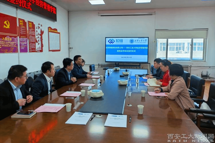隨后,雙方簽訂《北京知鏈科技有限公司——西安工業大學經濟管理學院戰略合作協議書》。
