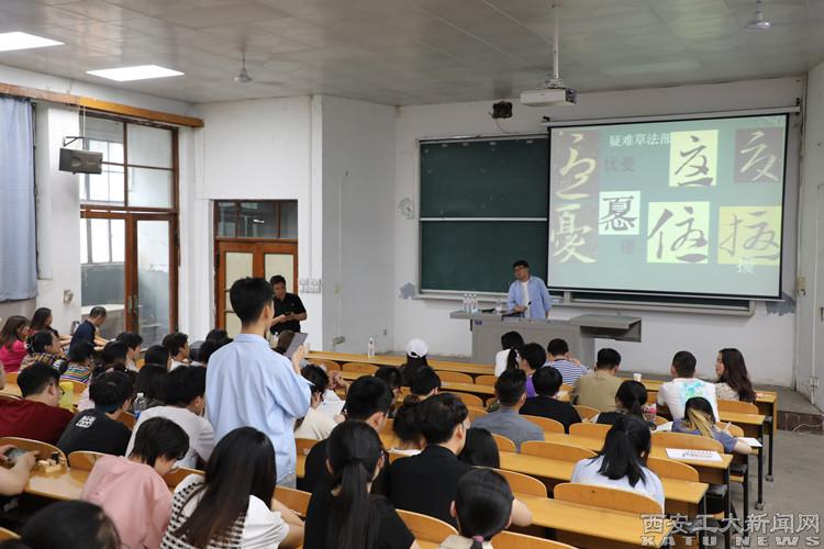 劉東芹結合20余年的學書、教學經歷,對自己的學書感悟和研究成果進行了深入闡述和交流分享。報告從文字字源梳理,草書、小篆偏旁與字根的有序組合,篆書、隸書、草書、楷書文字演變等不同角度,分析了草書字形的形成法則及草書的正誤辨析,旁征博引,深入淺出,不僅讓大家掌握了大量草篆字法、領略了草書的魅力,而且提升了對草書的鑒賞水平,有效提高了草書記憶和識別能力,為今后學習臨摹和創作實踐打下堅實的文字基礎。報告結束后,劉東芹現場為學生進行了書法創作示范,并參觀了中國書法學院傳統碑刻體驗中心。
