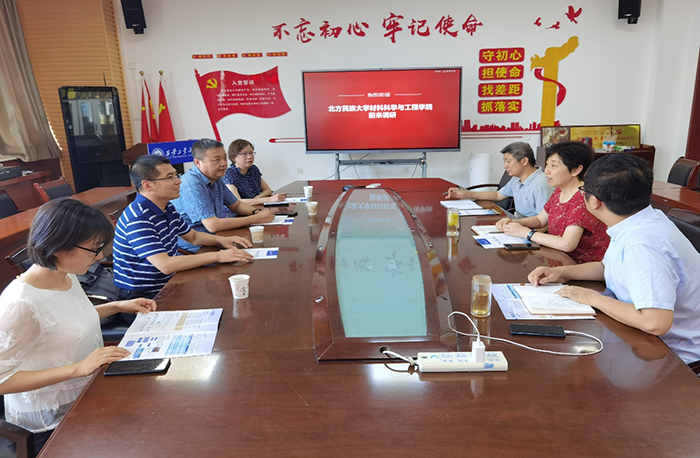 (本網訊)為提升學院教學水平,增進學院科研前瞻視野,實現“活力提升”年要求,材料與化工學院邀請北方民族大學材料科學與工程學院院長郭生偉、副書記馬建軍、中心實驗室主任侯俊峰一行前來調研交流。學院黨委書記呼曉青主持會議,副院長金洗郎、實驗室主任龍偉參加此次調研。
