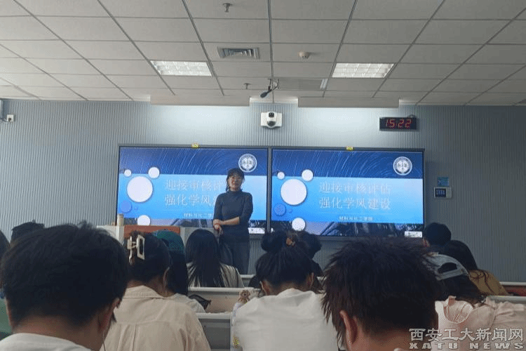 與會師生圍繞《西安工業(yè)大學(xué)本科教育教學(xué)審核評估應(yīng)知應(yīng)會知識手冊》、校史院情以及評估知識共同學(xué)習(xí)了相關(guān)內(nèi)容。隨后,各年級學(xué)生代表就專業(yè)學(xué)習(xí)、課程設(shè)置、考研就業(yè)、學(xué)科前沿等學(xué)風(fēng)建設(shè)相關(guān)內(nèi)容進(jìn)行了交流。梁艷峰強調(diào),本科教育教學(xué)審核評估工作意義重大,學(xué)院的師生要做到人人了解校史院情和評估工作相關(guān)內(nèi)容,將對學(xué)校的情感融入到學(xué)風(fēng)建設(shè)當(dāng)中,共同促進(jìn)學(xué)院和學(xué)校的高質(zhì)量發(fā)展。