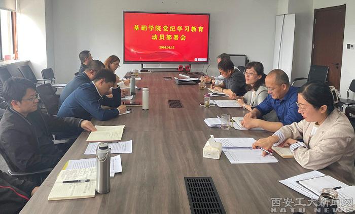 (本網訊)4月15日,基礎學院召開黨紀學習教育動員部署會議。黨委副書記、院長馮孝周主持會議,黨委書記張英作動員講話。